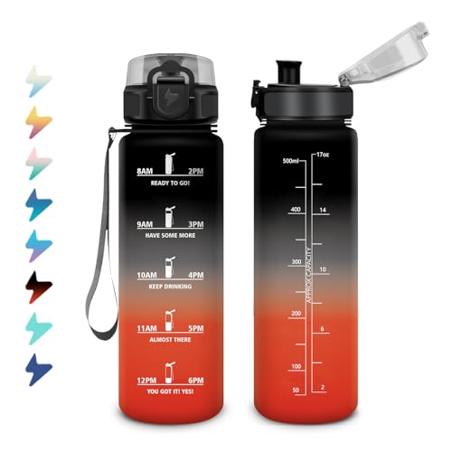 Gourde Motivation 500ml, Gourde avec Filtre et Marqueur de Temps, Gourdes Sport Réutilisable, Bouteille d'eau Étanche, Gourdes sans BPA, Bouteille pour Enfant, Fitness, Yoga, Bureau, Randonnée