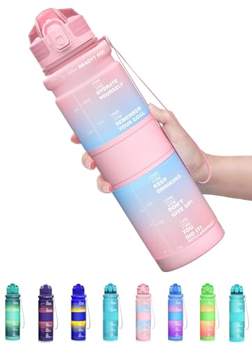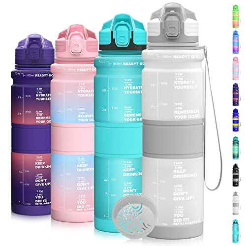 Grsta Gourde 1000ml, Gourde Sport avec Filtre, Bouteille d'eau, Bouteille avec Slogan de Motivation, Facile à Nettoyer, Bouteille Graduée pour 1 Journee, Bouteille d'eau pour Running, Randonnée, Vélo