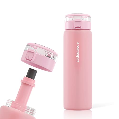Wessper Gourde en verre 680 ml avec filtre à eau, sans BPA, bouteille avec filtre à charbon actif, bouteille d’eau avec bouchon à vis pour salle de sport, fitness, école, bureau – Rose