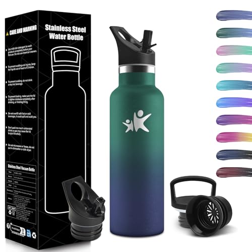 KollyKolla Gourde Isotherme 750ml, Bouteille Isotherme en Acier Inoxydable, Bouteille d'eau sans BPA, Gourde Inox avec Paille, Gourde Reutilisable pour l'École, Bureau, Extérieur, Camping, Yoga