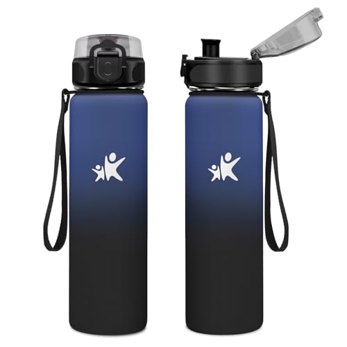 Vikastar Gourde Isotherme, 1 Litro Anti-Fuite, Bouteille Isotherme, sans BPA, Gourde Inox, Réutilisable,Bouteille Isotherme 1L pour Fitness, École, Sport, Cyclisme, Bleu Foncé & Noir