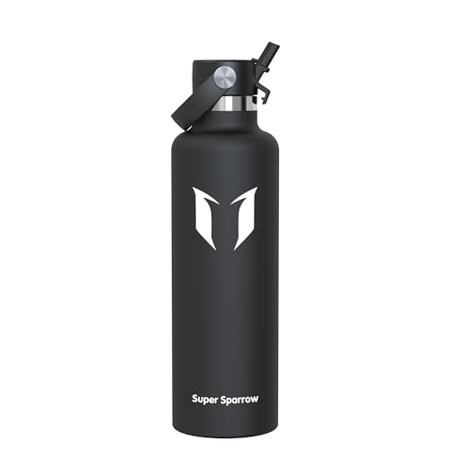 Super Sparrow Gourde Isotherme 1L - Bouteille Isotherme avec Paille - sans BPA - Gourdes Enfant INOX Bouche Standard pour Sport, Voyages, L'école, Bureau, Maison