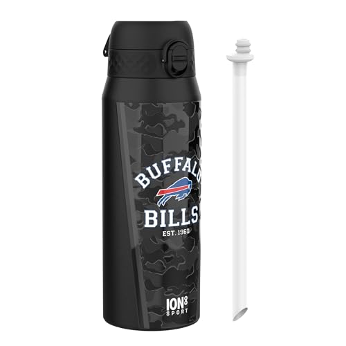 Ion8 NFL Buffalo Bills Gourde Thermique Avec Paille Amovible, 750ml/24oz, Bouteille Étanche À Isolation Sous Vide, Facile À Ouvrir, Verrou Sécurisé, Passe Au Lave-Vaisselle, Couvercle Rabattable