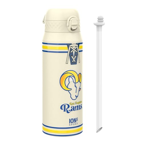 Ion8 NFL Los Angeles Rams Gourde Thermique Avec Paille Amovible, 750ml/24oz, Bouteille Étanche À Isolation Sous Vide, Facile À Ouvrir, Verrou Sécurisé, Passe Au Lave-Vaisselle, Couvercle Rabattable