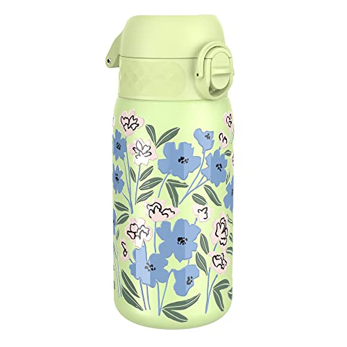 ION8 Gourde Isotherme Enfant, Inox, 320ml, Anti-Fuite, Facile à Ouvrir, Verrouillage Sécurisé, Lavable au Lave-Vaisselle, Poignée de Transport, Durable, Acier Inoxydable, Motif 3D Floral Moderne