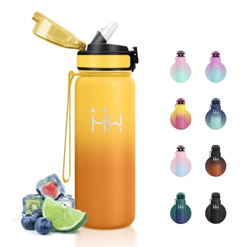 Gourde Isotherme 750ml, Gourde Sport avec Paille, sans BPA, Double Paroi Isolante, Légère et Résistante, Anti-Fuite, Bouteille pour École, Sport, Bureau, Gym, Yoga, Camping