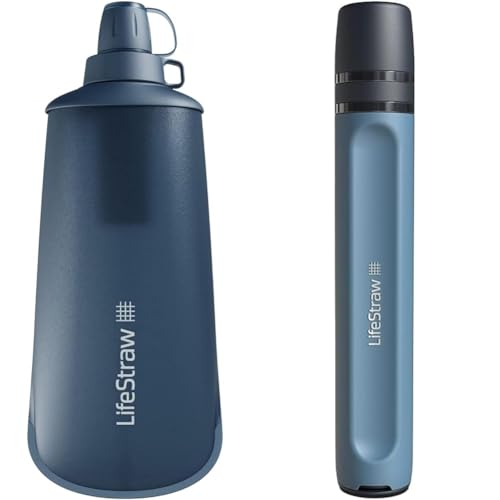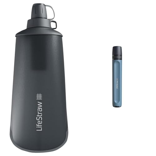 LifeStraw Peak Series - Gourde compressible avec système de filtration d'eau 1l & Peak Series - Paille filtrante Personal Water pour filtration, urgence, survie
