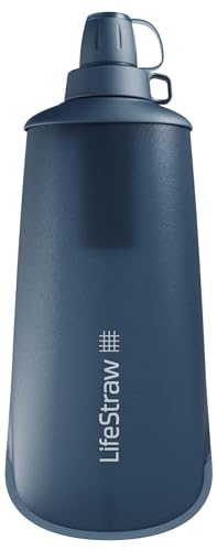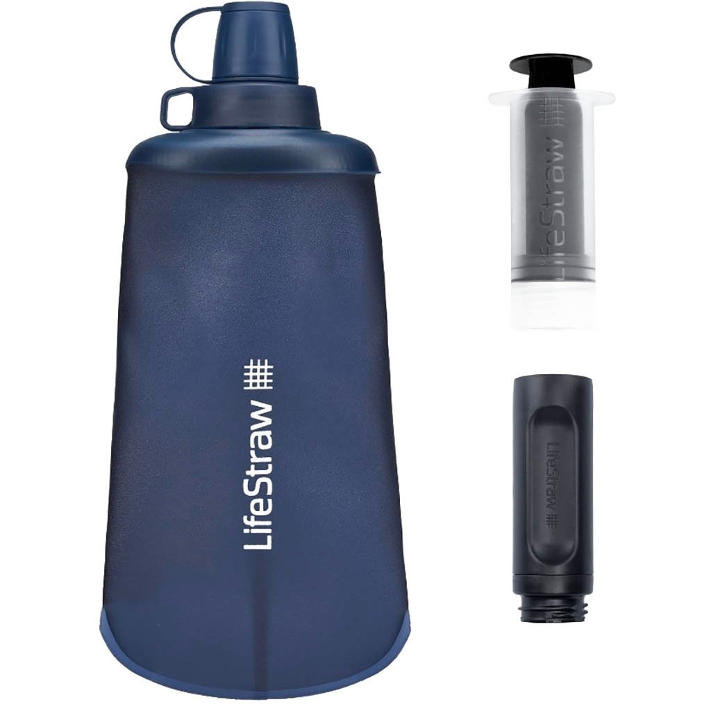 LifeStraw Peak Series - Gourde compressible avec système de filtration d'eau 1l – pour du trail running, de la randonnée, des voyages, du vélo, de la pêche ; Sans BPA; Mountain Blue (bleu)