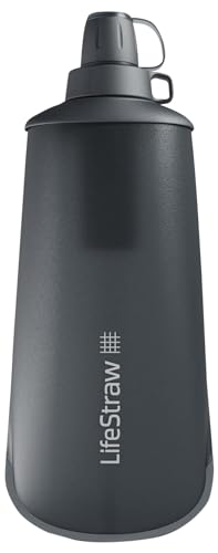 LifeStraw Peak Series - Gourde compressible avec système de filtration d'eau 1l – pour du trail running, de la randonnée, des voyages, du vélo, de la pêche ; Sans BPA; Dark Mountain Gray (gris)