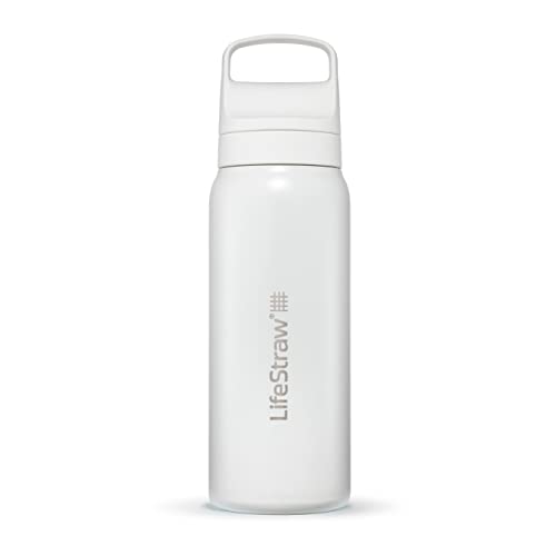 LifeStraw Go Series — Gourde filtrante en inox 700ml pour les voyages et l’utilisation quotidienne. Élimine les bactéries, les parasites et microplastiques, améliore le goût, Polar White (blanc)
