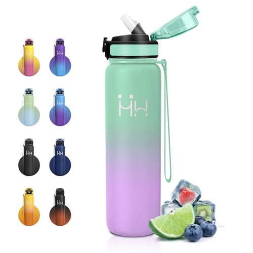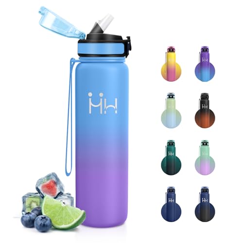 HoneyHolly Gourde 1l, Étanches, Gourde Paille, sans BPA & Réutilisable, Bouteille, Motivation Bouteille d'eau, Avec Marqueur de Temps, Gourde Sport pour Gym, Ecole, Cyclisme, Plein air, Sport