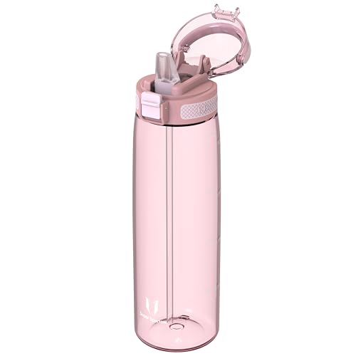 Vikaster Gourde, Gourde avec Paille 1l, sans BPA, Étanche & Réutilisable, Water Bottle Ouvrir en Un Clic, Convient pour la Gym, Le Yoga, Le Camping, Randonnée
