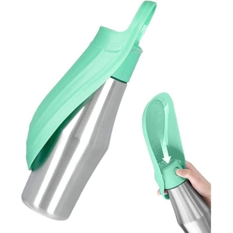 Gourde pour chiens pendant les promenades, bol intégré pour chiots – distributeur anti-goutte de 0,75 litre en acier inoxydable pour chats et chiens, voyages, excursions et activités