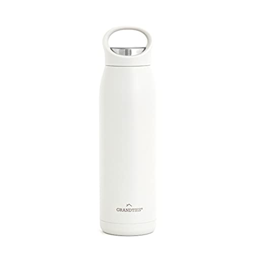 Grandties Gourde de sport isotherme de 700 ml avec couvercle ergonomique anti-fuite avec poignée – Gourde à double paroi en acier inoxydable garde jusqu'à 24 h/12 h au chaud (blanc) ZL001210701