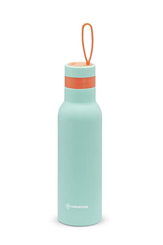 Osama - Gourde Isotherme 500 ML INOX Antibactérienne - Bouteille Isotherme Idéale comme Gourde Enfant, Gourde Sport et Travail, 24h Cold et 12h Hot, Hermétique et Antidérapant, 8x8x24h, Vert/Orange