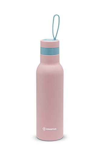 Osama - Gourde Isotherme 500 ML INOX Antibactérienne - Bouteille Isotherme Idéale comme Gourde Enfant, Gourde Sport et Travail, 24h Cold et 12h Hot, Hermétique et Antidérapant, 8x8x24, Rose/Pétrole