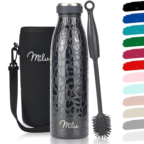 Milu Bouteille d'eau en Acier Inoxydable - Double paroi isolée sous vide - Bouche Standard Gourde - 350ml 500ml / 750ml / 1000ml/ 1.5l - sans BPA - Thermo Gourde Bouteilles (Black Leopard, 500ml)