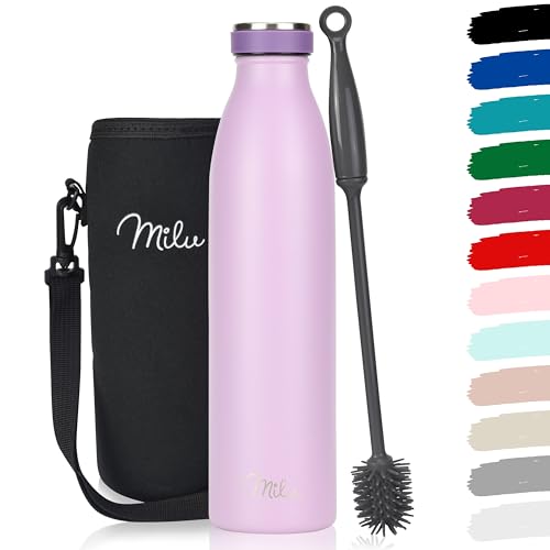 Milu Bouteille d'eau en Acier Inoxydable - Double paroi isolée sous vide - Bouche Standard Gourde - 350ml 500ml / 750ml / 1000ml/ 1.5l - sans BPA - Thermo Gourde Bouteilles (Lilac, 750ml)