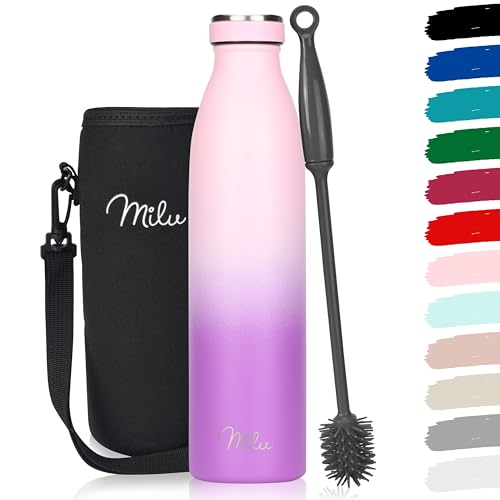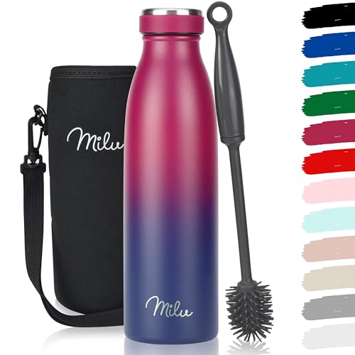 Milu Bouteille d'eau en Acier Inoxydable - Double paroi isolée sous vide - Bouche Standard Gourde - 350ml 500ml / 750ml / 1000ml/ 1.5l - sans BPA - Thermo Gourde Bouteilles (Rose Violet, 750ml)