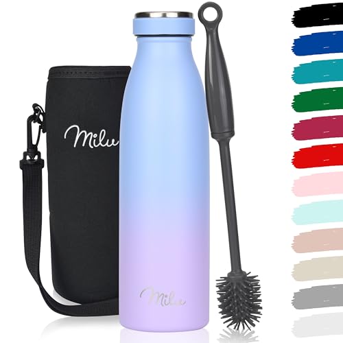 Milu Bouteille d'eau en Acier Inoxydable - Double paroi isolée sous vide - Bouche Standard Gourde - 350ml 500ml / 750ml / 1000ml/ 1.5l - sans BPA - Thermo Gourde Bouteilles (Aurora, 500ml)
