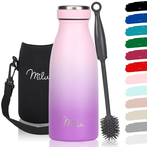 Milu Bouteille d'eau en Acier Inoxydable - Double paroi isolée sous vide - Bouche Standard Gourde - 350ml 500ml / 750ml / 1000ml/ 1.5l - sans BPA - Thermo Gourde Bouteilles (Rose Violet, 350ml)