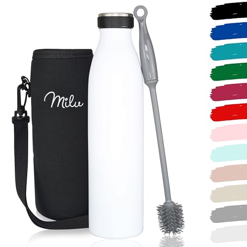 Milu Bouteille d'eau en Acier Inoxydable - Double paroi isolée sous vide - Bouche Standard Gourde - 350ml 500ml / 750ml / 1000ml/ 1.5l - sans BPA - Thermo Gourde Bouteilles (Blanc, 750ml)