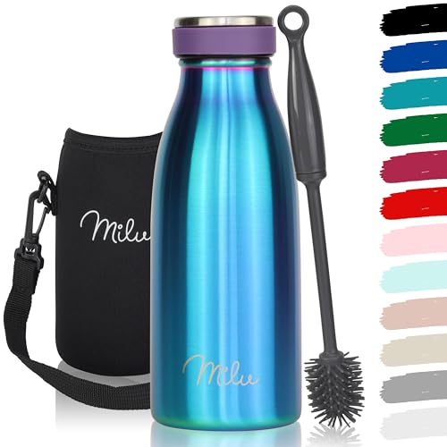 Milu Bouteille d'eau en Acier Inoxydable - Double paroi isolée sous vide - Bouche Standard Gourde - 350ml 500ml / 750ml / 1000ml/ 1.5l - sans BPA - Thermo Gourde Bouteilles (Aurora, 350ml)