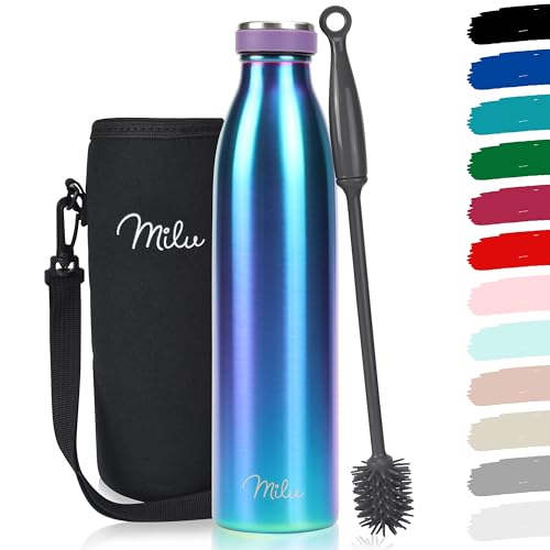 Milu Bouteille d'eau en Acier Inoxydable - Double paroi isolée sous vide - Bouche Standard Gourde - 350ml 500ml / 750ml / 1000ml/ 1.5l - sans BPA - Thermo Gourde Bouteilles (Aurora, 750ml)
