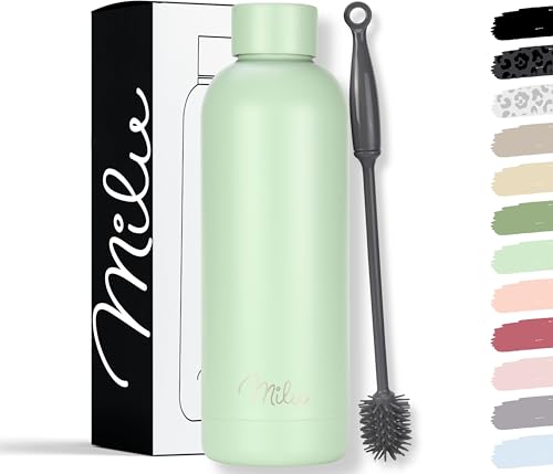 Milu Bouteille 500ml, 750ml, 1 L - d'eau en Acier Inoxydable - Double paroi isolée sous vide - Bouche Gourde Thermo Bouteilles (Lily Vert, 500ml)
