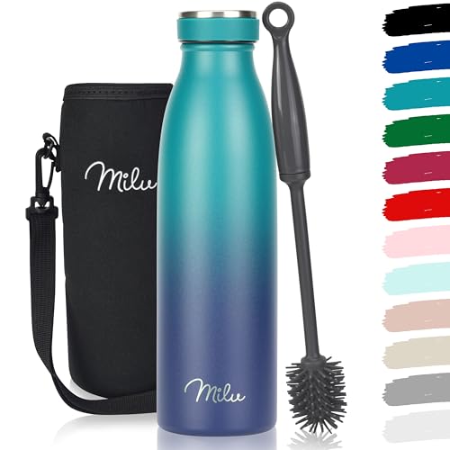 Milu Bouteille d'eau en Acier Inoxydable - Double paroi isolée sous vide - Bouche Standard Gourde - 350ml 500ml / 750ml / 1000ml/ 1.5l - sans BPA - Thermo Gourde Bouteilles (Vert Bleu, 750ml)