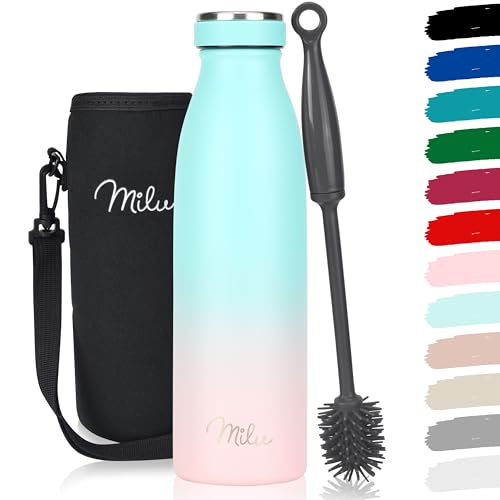 Milu Bouteille d'eau en Acier Inoxydable - Double paroi isolée sous vide - Bouche Standard Gourde - 350ml 500ml / 750ml / 1000ml/ 1.5l - sans BPA - Thermo Gourde Bouteilles (Mint Rosa, 500ml)