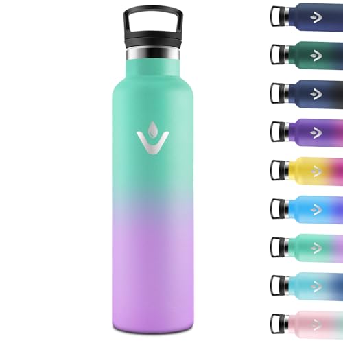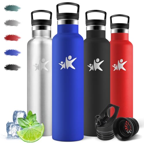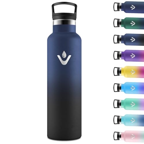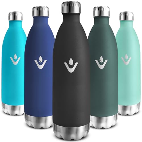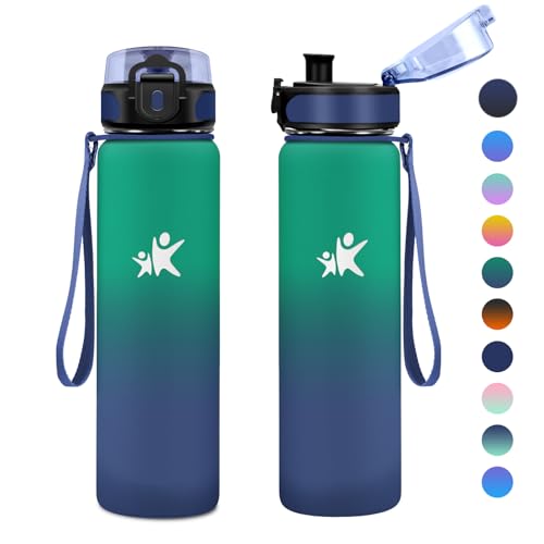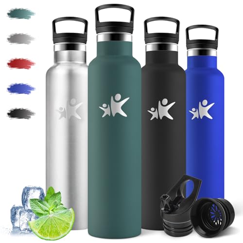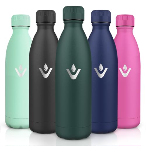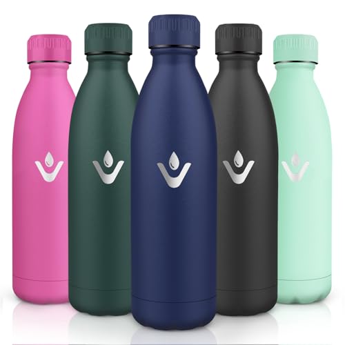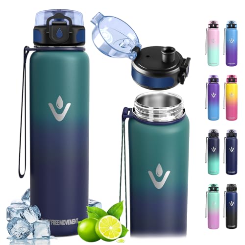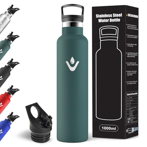 Vikaster Water bottle - Thermos 1 l, 24h froid & 12h chaud, Gourdes Sans BPA, Gourde Enfant & Adulte pour Sport, école, Bureau, Gym, Voyage, Vert Militaire & Bleu Marine