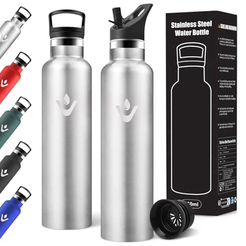 Motswedi Gourde Isotherme 1l, Froid&Chaud, sans BPA, Gourde Paille, 18/8 Acier Inoxydable, Bouteille d'eau, Réutilisable, Bouteille Isotherme, Thermos pour Randonnée, Bureau, Outdoor, Gris métallisé