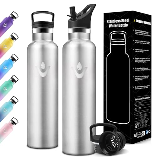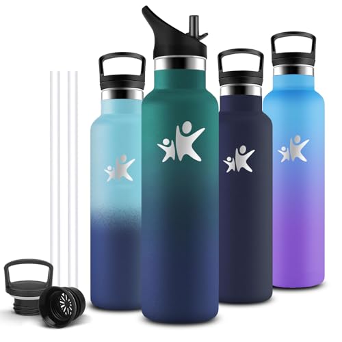 Vikaster Bouteille d'eau isotherme, Thermos 1l, Gourde Avec Paille, Gourdes Sans BPA, Gourde Enfant & Adulte pour Sport, école, Gym, Bureau, Voyage, Yl-aciers Inoxydables