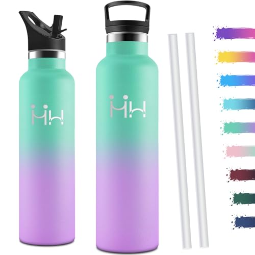 Motswedi Gourde Isotherme 1l, avec Paille, Bouteille Isotherme, Poignée de Transport, Thermos 1l, Anti-Fuite, Gourde Inox, Réutilisable, Thermos pour Sport, Voyage, Camping, Vert Lac & Violet Clair