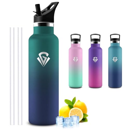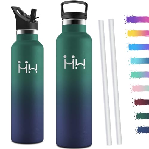 Motswedi Gourde Isotherme 1l, avec Paille, Bouteille Isotherme, Poignée de Transport, Thermos 1l, Anti-Fuite, Gourde Inox, Réutilisable, Thermos pour Sport, Voyage, Camping, Vert Foncé & Bleu Foncé