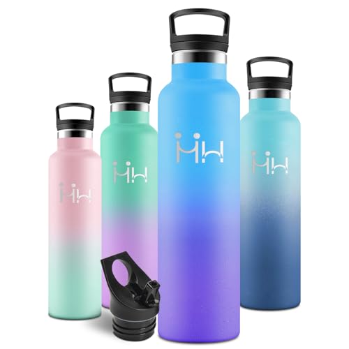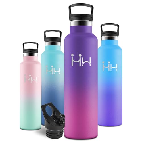 Motswedi Gourde Isotherme 1l, Thermos Isotherme, Acier Inoxydable, Gourde Inox, pour L'eau Froide et Chaude, Bouteille d'eau 1l, Pour Camping, Voyage, Randonnée, Sports, Bleu ciel & Violet-A