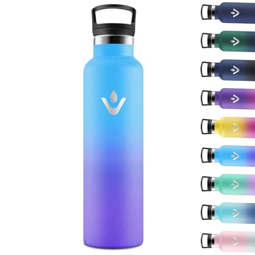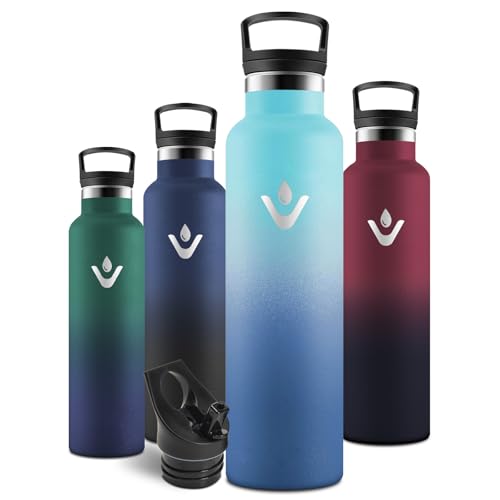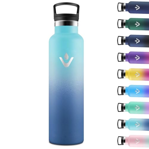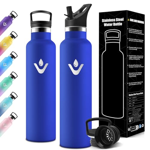 Vezato Gourde en acier inoxydable - Bouteille d'eau étanche avec double isolation - Bouteille thermos lavable au lave-vaisselle (Bleu, 1 L)