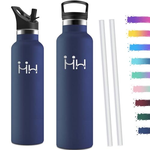 Motswedi Gourde Isotherme 1l, avec Paille, Bouteille Isotherme, Poignée de Transport, Thermos 1l, Anti-Fuite, Gourde Inox, Réutilisable, Thermos pour Sport, Voyage, Camping, Bleu Foncé & Noir