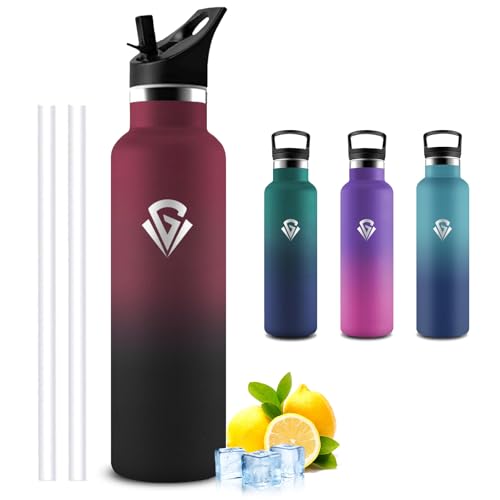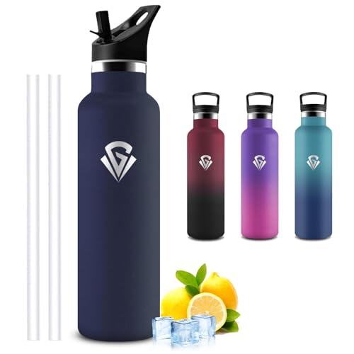 Grsta Gourde, Bouteille Isotherme 1l, Anti Fuite, Gourde Paille Adulte, Double Isolation, Bouteille Inox, Acier Inoxydable 18/8, Thermos Isotherme, Bouteille d'eau pour Randonnée, Camping, Aptitude