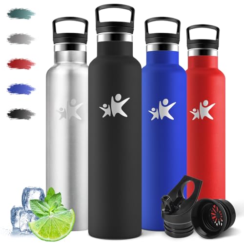 KollyKolla Isotherme 1l, Gourde Metal, Gourde Inox sans BPA, Réutilisable, Thermos Anti Fuite, Bouteille Isotherme en Acier Inoxydable pour Enfant & Adulte, École, Bureau, Outdoor, Sport