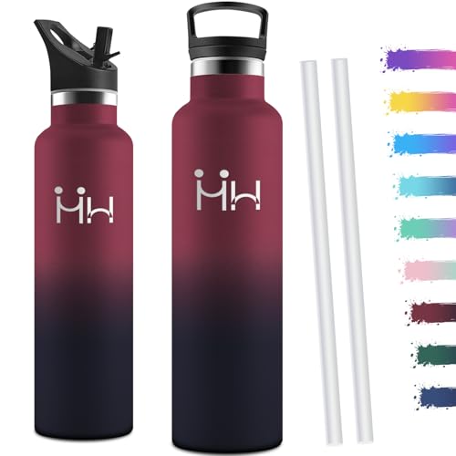 Motswedi Gourde Isotherme 1l, Froid&Chaud, sans BPA, Gourde Paille, 18/8 Acier Inoxydable, Bouteille d'eau, Réutilisable, Bouteille Isotherme, Thermos pour Randonnée, Bureau, Outdoor, Sport, Rouge