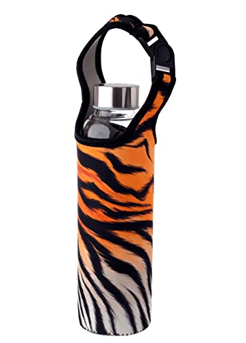 Puckator Bouteille d'eau en Verre (Gourde) 500ml & Manchon à Lanière de Transport Wild Life - Imprimé Animal
