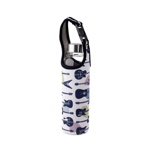 Puckator Bouteille d'eau en Verre (Gourde) 500ml & Manchon à Lanière de Transport Headstock - Guitare