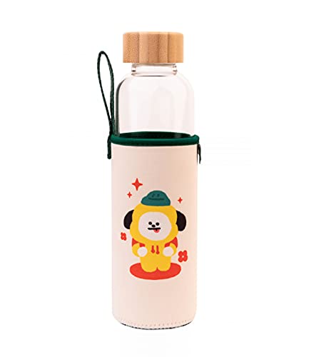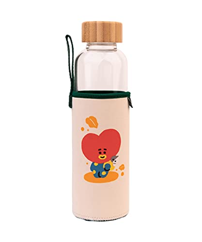 Grupo Erik - Bouteille en Verre BT21 Shooky - Capacité 50 cl, Avec Bouchon en Bambou et Protection, Inclut un Étui en Néoprène avec Dragonne, Gourde en verre
