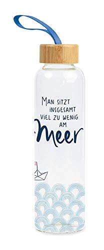 Grafik-Werkstatt Gourde en verre avec inscription amusante | avec dragonne | 550 ml | mer