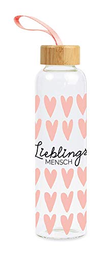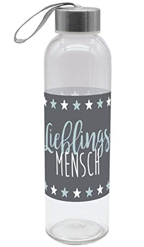 Grafik-Werkstatt Gourde en verre avec inscription amusante | avec dragonne | 550 ml | Lieblingsmensch