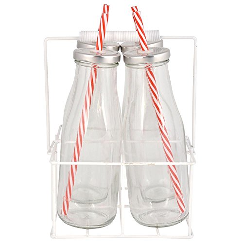 volila Eau Bouteilles Verre – Lot de 6 Bouteilles en Verre de 500ml pour Eau, Jus, Lait et Smoothies – Gourdes Réutilisables de 18oz avec Bouchons Métalliques, Brosse et Étiquettes Blanches