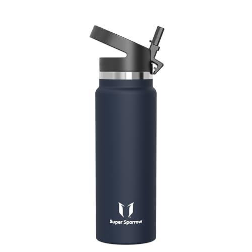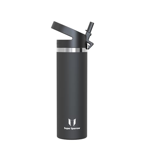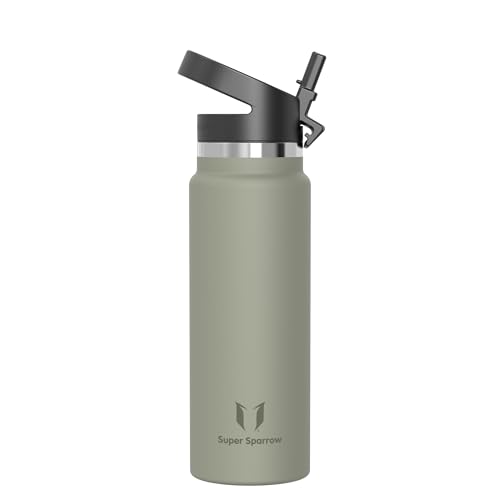 Super Sparrow Gourde Isotherme - 750ml - Paille Bouche Large Bouteille - sans BPA - SwivelSip Gourdes INOX - pour Sport, Voyages, L'école