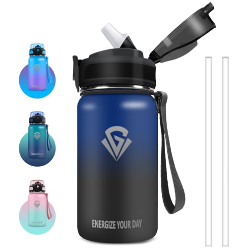 Grsta Gourde Enfant, Gourde Isotherme Sans BPA, Gourdes 500ml Garçons & Filles, Gourdes avec Paille, Réutilisable, Anti Fuite, Facile à Nettoyer, pour École, Bureau, Outdoor